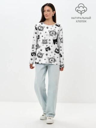 Лонгслив женский. Хлопок / Котики | ЧБ
