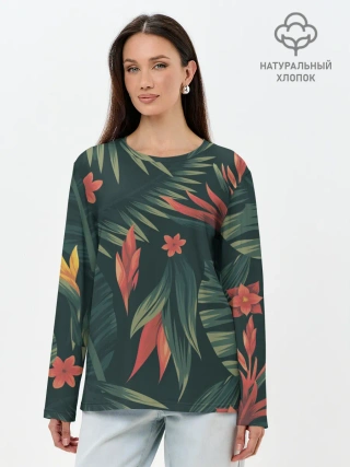 Лонгслив женский. Хлопок / Тропический комуфляж