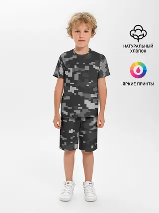 Детская пижама с шортами / Пиксельный камуфляж