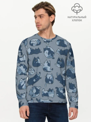 Мужской лонгслив базовый / Камуфляж с котиками