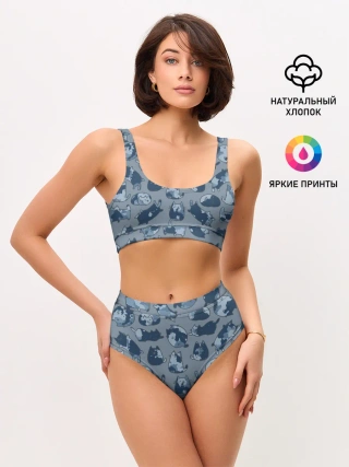 Женские топ и трусы / Камуфляж с котиками