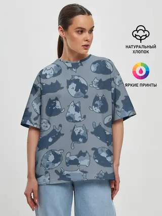 Женская футболка оверсайз / Камуфляж с котиками