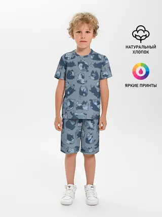 Детская пижама с шортами / Камуфляж с котиками
