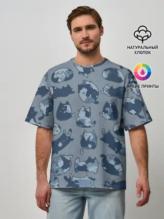 Мужская футболка оверсайз / Камуфляж с котиками