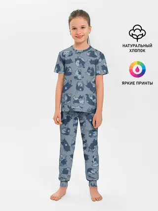 Детская пижама с брюками / Камуфляж с котиками