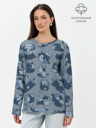 Лонгслив женский. Хлопок / Камуфляж с котиками
