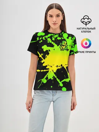 Женская базовая футболка / KILLA зеленые брызги