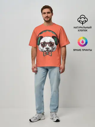 Мужская футболка оверсайз / панда-меломан
