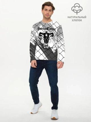 Мужской лонгслив базовый / Чёрный клевер бык за решеткой.