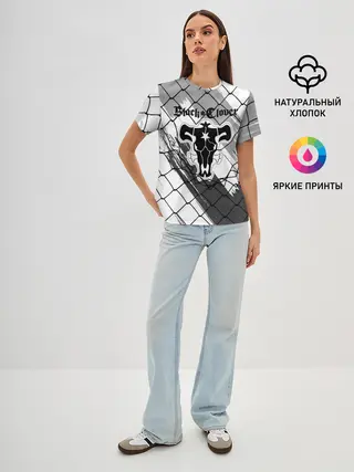 Женская базовая футболка / Чёрный клевер бык за решеткой.