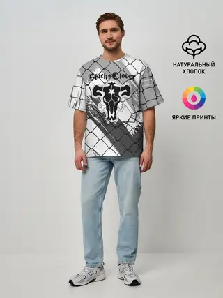 Мужская футболка оверсайз / Чёрный клевер бык за решеткой.