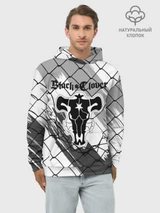 Худи мужской база хлопок / Чёрный клевер бык за решеткой.