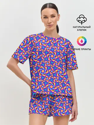 Женская пижама с шортами / Красочный фон с цветами