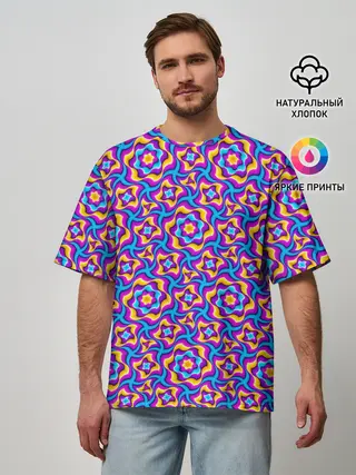 Мужская футболка оверсайз / Красочный фон с цветами