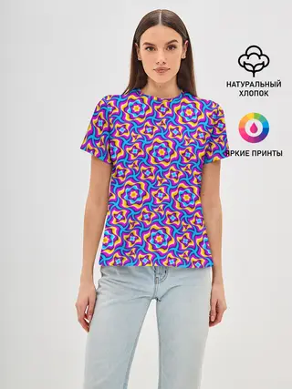 Женская базовая футболка / Красочный фон с цветами