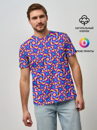Мужская базовая футболка / Красочный фон с цветами
