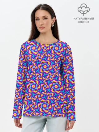 Лонгслив женский. Хлопок / Красочный фон с цветами