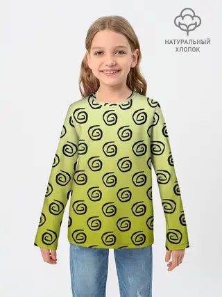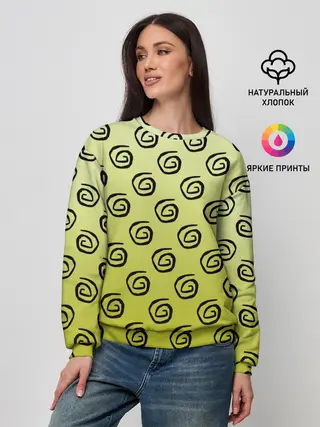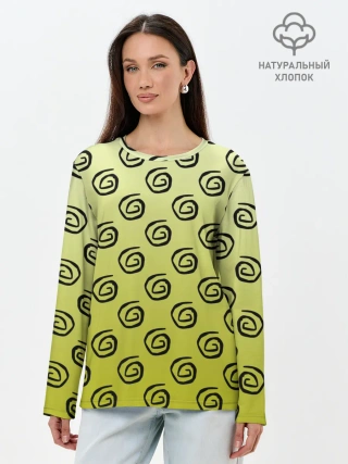 Лонгслив женский. Хлопок / узор спиральки на желтом фоне