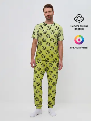 Мужская пижама с брюками / узор спиральки на желтом фоне