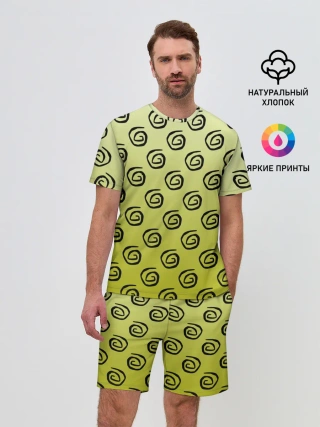 Мужской костюм с шортами / узор спиральки на желтом фоне
