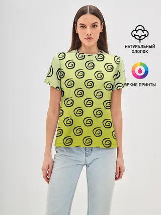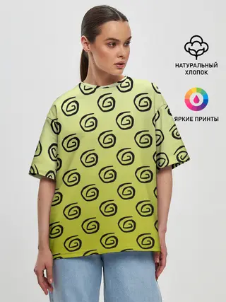 Женская футболка оверсайз / узор спиральки на желтом фоне