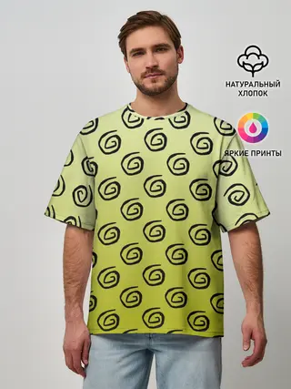 Мужская футболка оверсайз / узор спиральки на желтом фоне