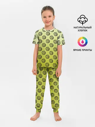 Детская пижама с брюками / узор спиральки на желтом фоне