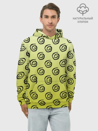 Худи мужской база хлопок / узор спиральки на желтом фоне