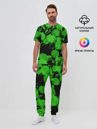 Мужская пижама с брюками / Зеленые Кляксы