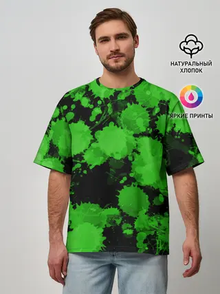 Мужская футболка оверсайз / Зеленые Кляксы