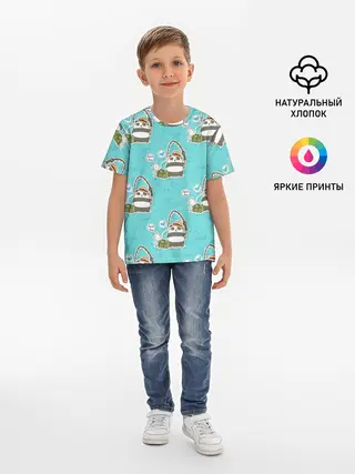 Детская базовая футболка / Панда на рыбалке