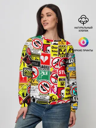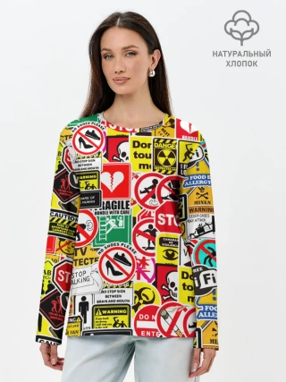 Лонгслив женский. Хлопок / Запрещающие знаки