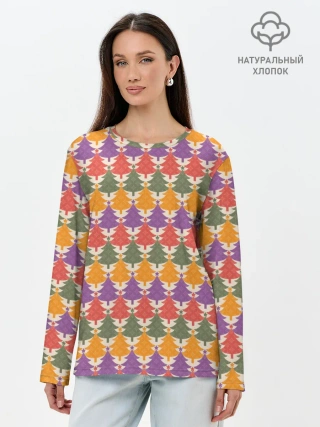 Лонгслив женский. Хлопок / Ёлочки