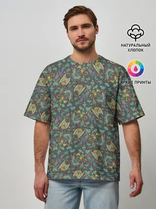 Мужская футболка оверсайз / Летучие мыши. Охота.