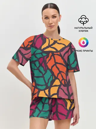 Женская пижама с шортами / Листья