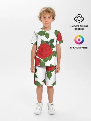 Детская пижама с шортами / Большие розы