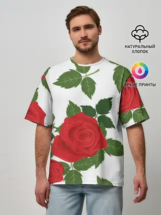 Мужская футболка оверсайз / Большие розы