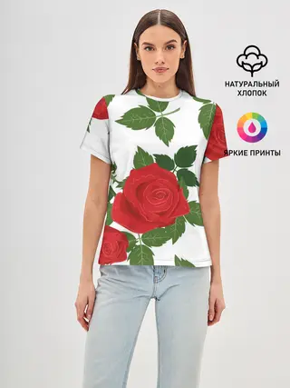 Женская базовая футболка / Большие розы