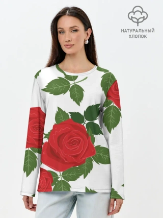 Лонгслив женский. Хлопок / Большие розы