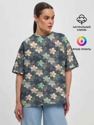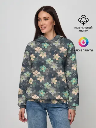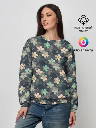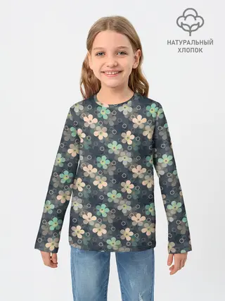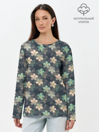 Лонгслив женский. Хлопок / Цветочный ретро узор