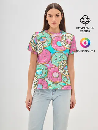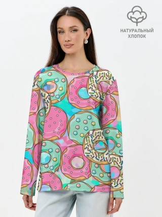 Лонгслив женский. Хлопок / Сладкие Пончики