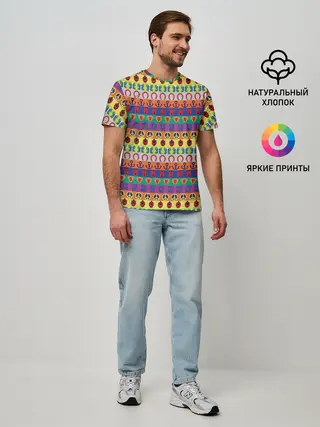 Мужские трусы с футболкой / Розовобелый паттерн джоджо