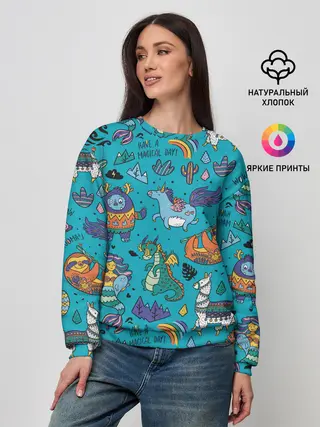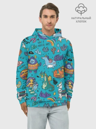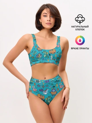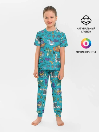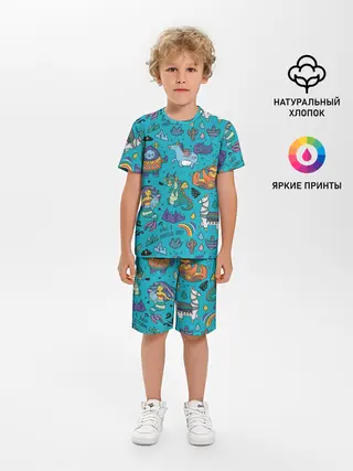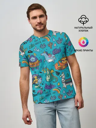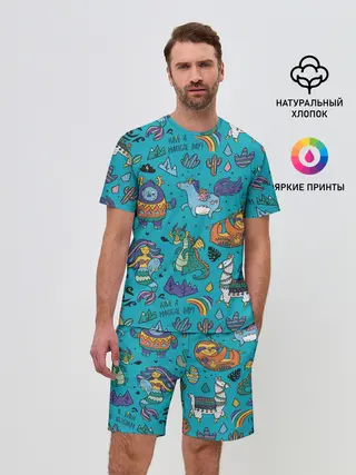 Мужские трусы с футболкой / Овечки паттерн на бирюзовом
