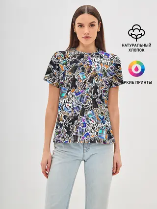 Женская базовая футболка / Fortnite Sticker Bombing