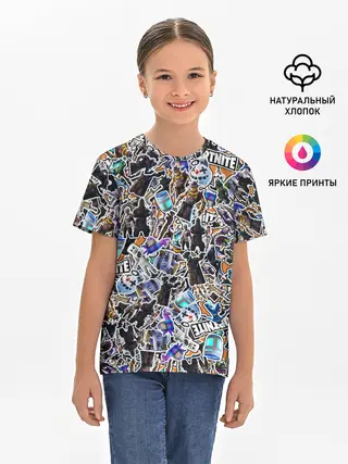 Детская базовая футболка / Fortnite Sticker Bombing