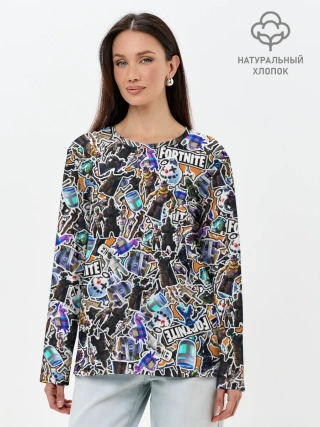 Лонгслив женский. Хлопок / Fortnite Sticker Bombing