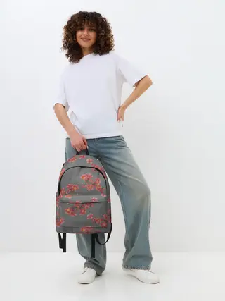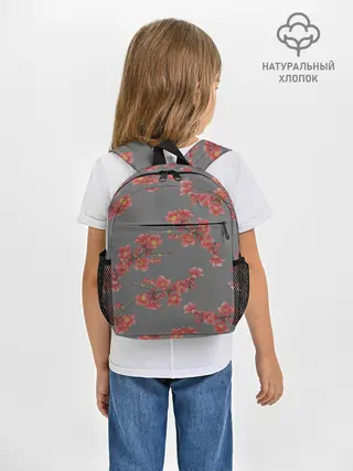 Рюкзак джинсовый / Цветы айвы на сером фоне
