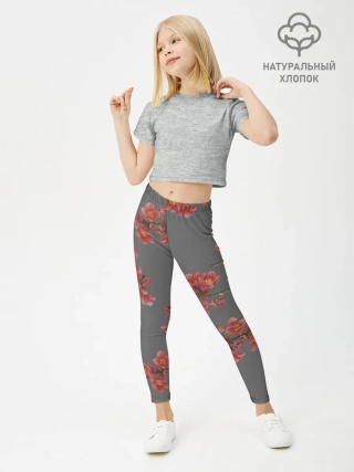 Леггинсы для девочки / Цветы айвы на сером фоне