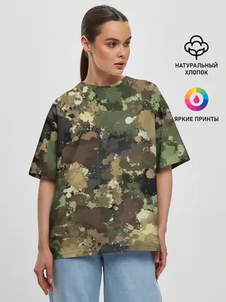 Женская футболка оверсайз / Камуфляж с кляксами