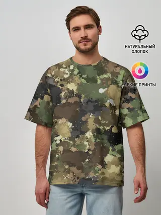Мужская футболка оверсайз / Камуфляж с кляксами